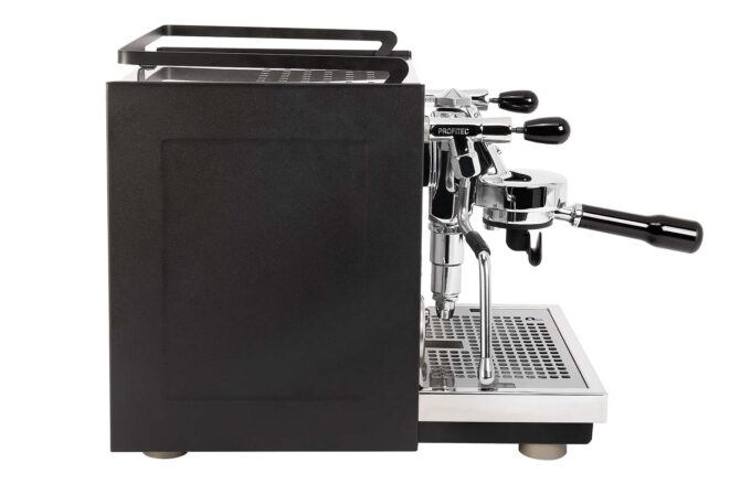Und dann dieser Look: Die eleganten matt schwarzen Seitenwände, heben sich, wie auch die Reling, kontrastreich von der satinierten Front, der Tassenablage und der silbernen Wasserauffangschale ab. Die Manometer harmonieren mit der Displayanzeige und runden das Erscheinungsbild ab.